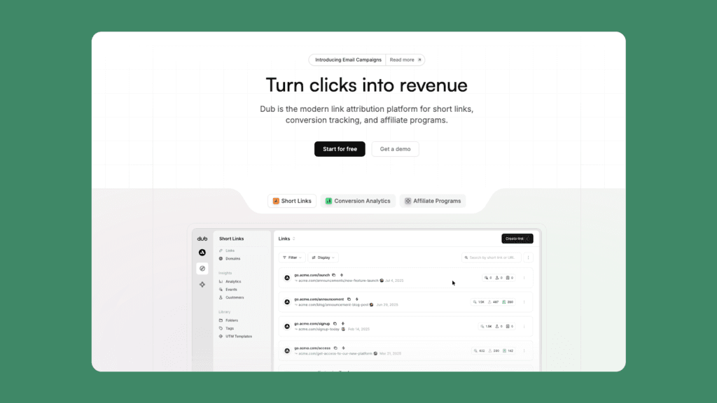 It bills itself as a “modern link attribution platform” for both regular short links (Dub Links) and affiliate/referral programs (Dub Partners).