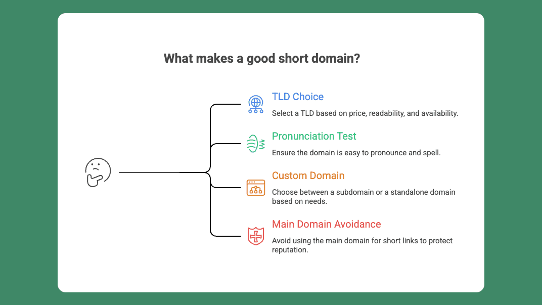 Most teams start with a subdomain and only move to a standalone short domain if they need the extra brevity. A subdomain is faster to set up and doesn't cost anything extra.