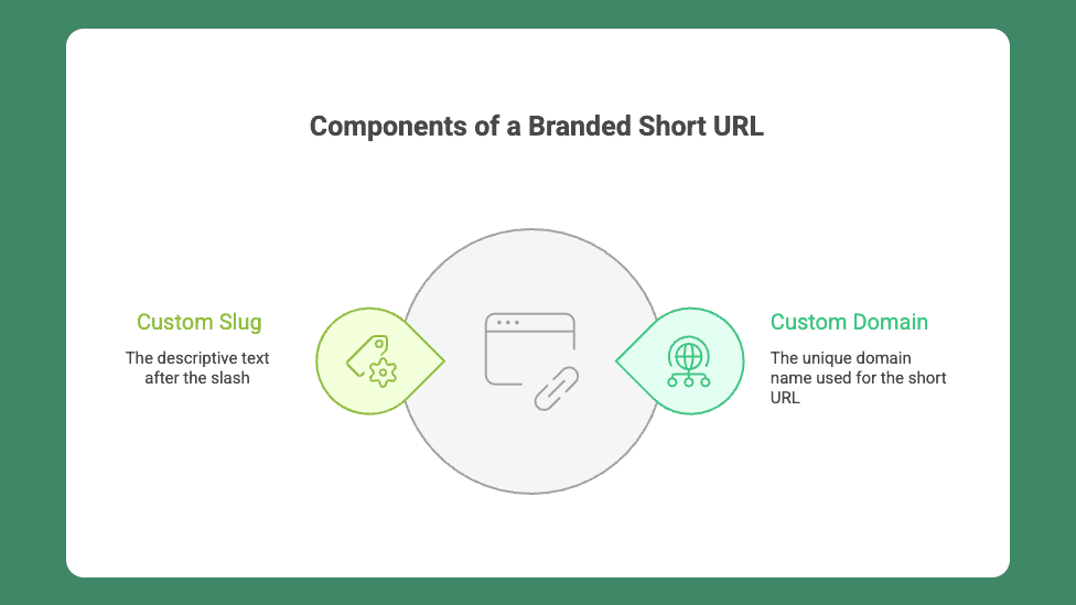 A branded short URL, also known as a custom short URL, is a shortened link that uses a domain you own instead of the shortener provider’s shared domain. Two components make it work.